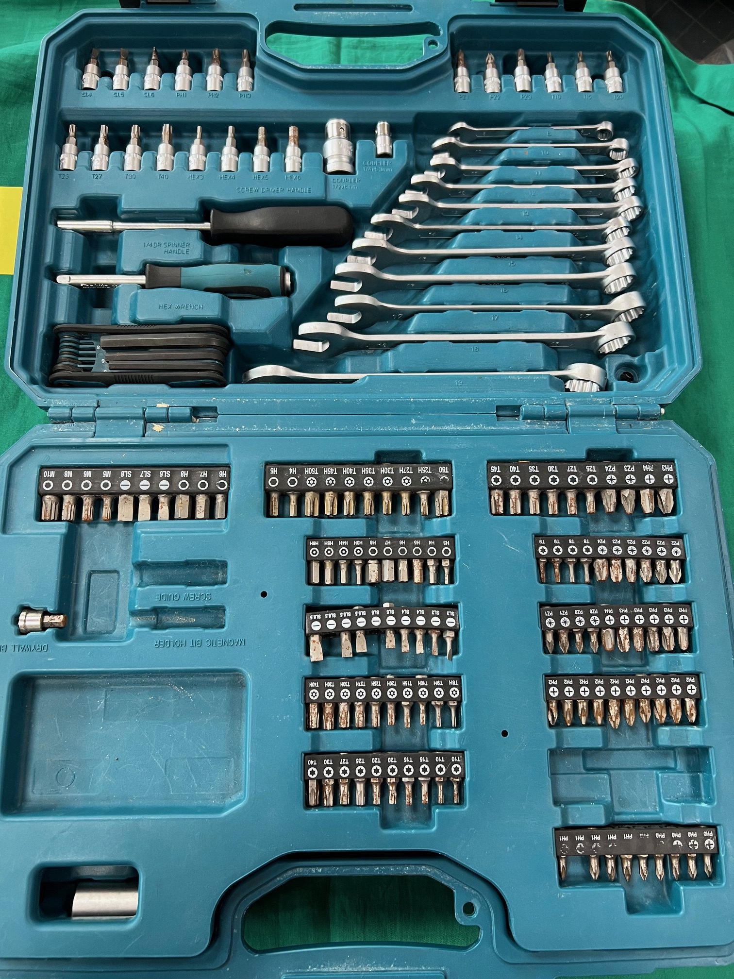 Eladó kiváló állapotú, használt Makita szerszámkészlet, 221 darabos, kofferben!