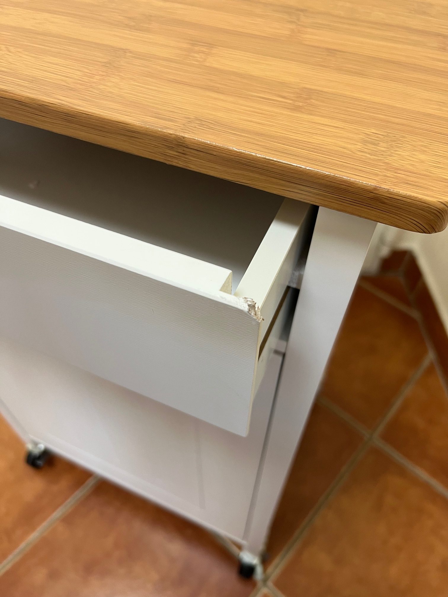 • A konyhai zsúrkocsi fából készült, fehér-natúr színben