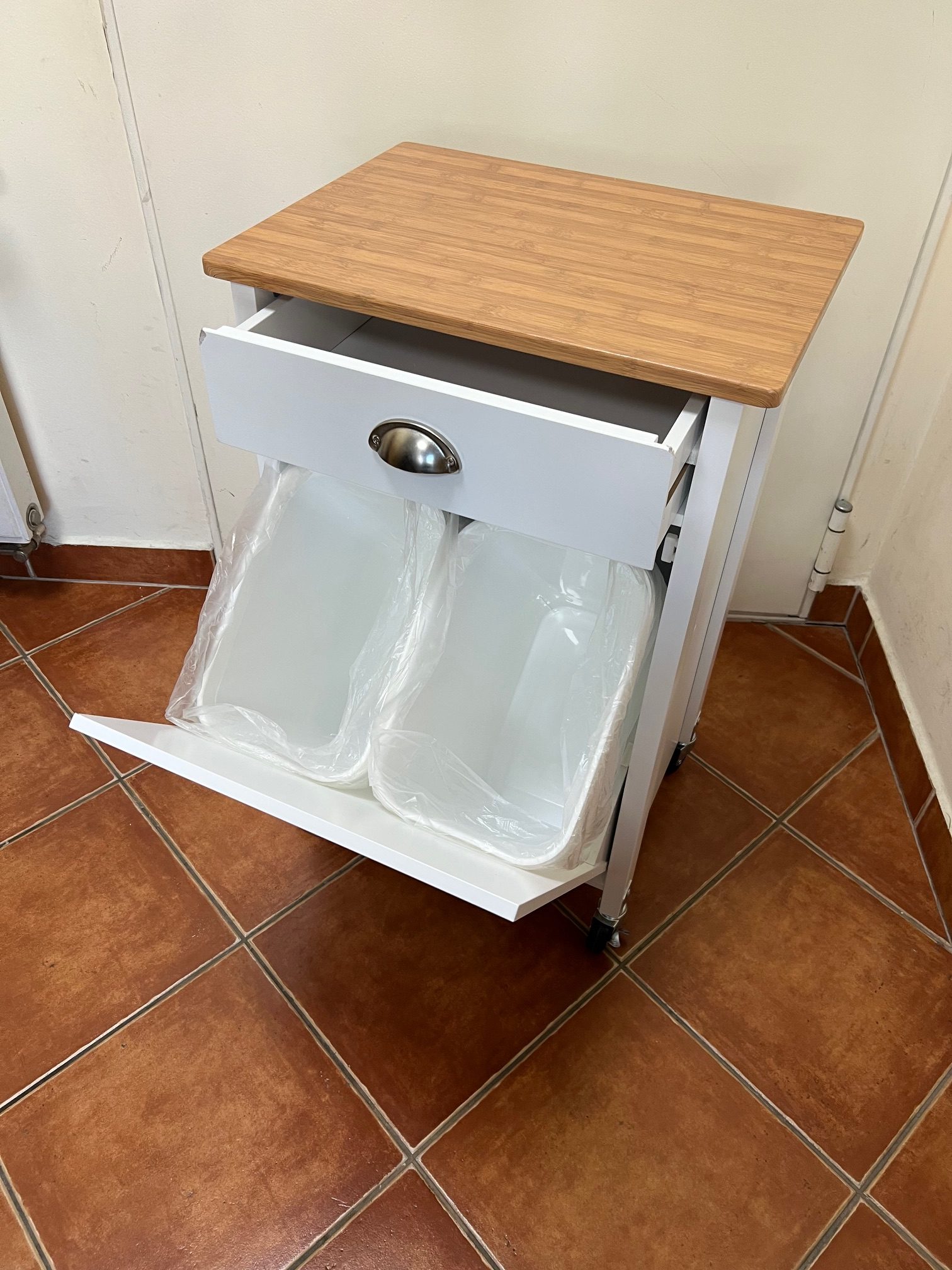• A zsanéros alsó szekrényben két kivehető szemetes található, amelyeket optimálisan használhatsz a hulladék szétválasztására