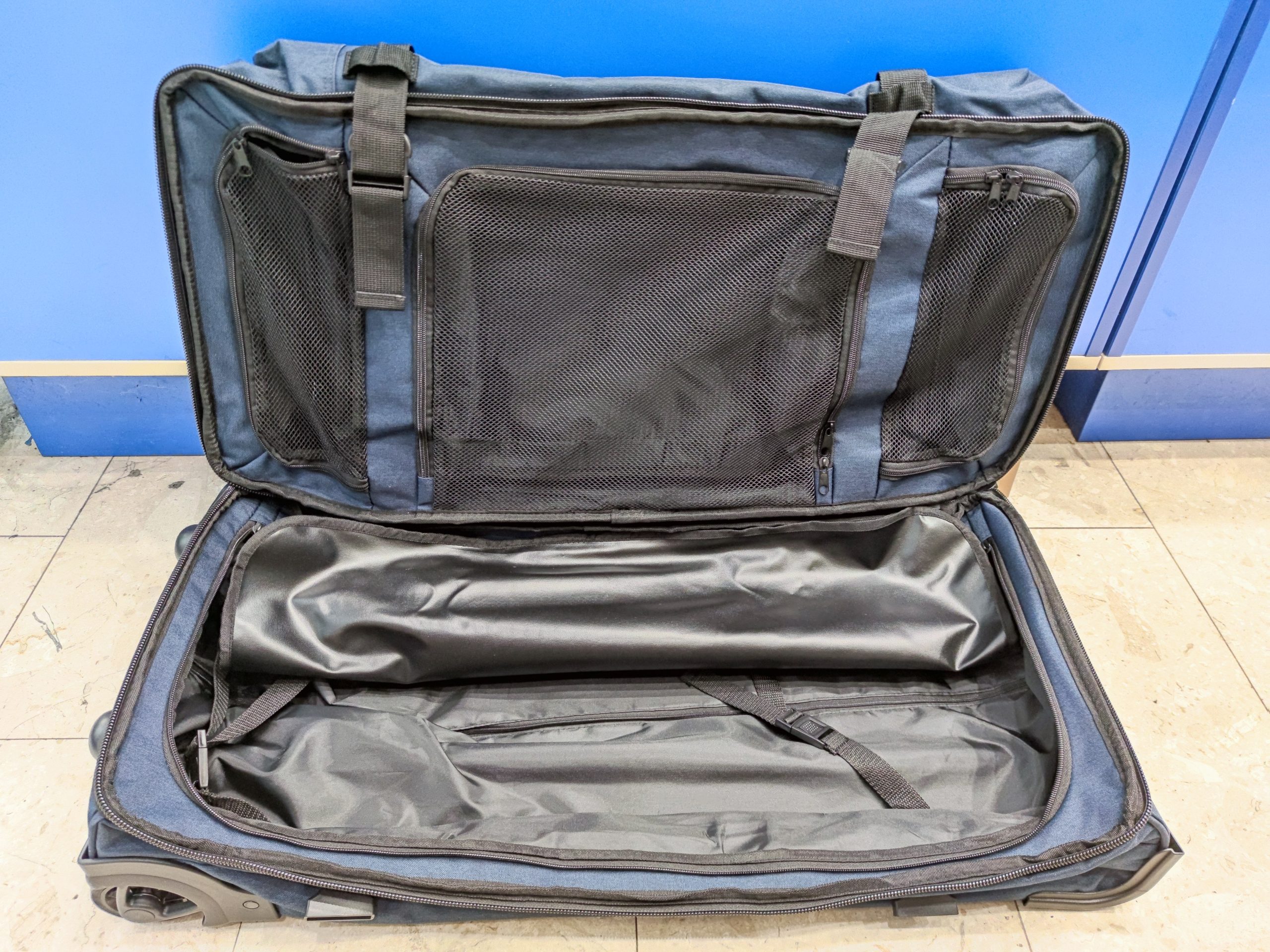 Utazótáska 2 kerekekkel, újrahasznosított poliészterből, vízlepergető bevonattal. Tökéletes sporttáskaként és utazótáskaként.